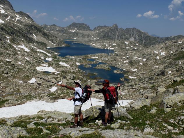 A partir de la collada Lac del Mar, les lacs vont encore continuer à se succéder : Lac Tort de Rius et lac de Rius. A noter le casse tête des noms : les lacs s’appellent « estanh » en Catalogne. Comment s’appellent les étangs ? Quand aux cols, c’est encore moins clair : Collado, corret, port, colh…