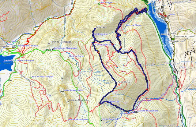Destination : boucle par cabane de Chérue, pic Lavigne, pic de Chérue, col de Magnabaigt, cabane de Saoubiste et retour par cabane de Chérue