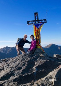 Table d’orientation inutile étant donné la brume dans la vallée. Photo traditionnelle sous la grande croix de fer recouverte d’un drapeau catalan appelant à voter deux jours plus tard au référendum d’indépendance de la Catalogne (espagnole).
