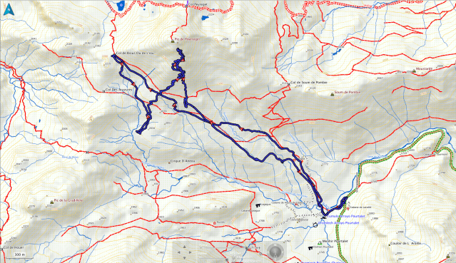 – Point le plus bas : 1733 m (pk d’Anéou sur RN), le plus haut : 2417 m (bas cheminée finale pour Peyreget), dénivelé montant et descendant : 920 m, durée de la sortie : 5h15, distance parcourue : 11 km