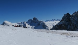 Personne ne le dit mais le stress plane au-dessus de l’équipe, au moment où elle chausse les skis de randonnée, pour cette première journée du raid. Qu’ai-je oublié ? Crampons, couteaux, gants, bonnet… sourire ? Le matériel est-il bien réglé ? Le guide, comment est-il ?