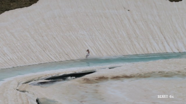 Mieux encore, c’est sur les pentes enneigés du Montagnon qu’il grimpe maintenant pour prendre son élan afin de « surfer » sur l’eau de fonte qui couvre la couche de glace du lac. Une fois, deux fois, trois fois. Non, la glace ne cède pas. Originaires d’Izeste et de Sévignacq, les deux jeunes ossalois ont bien préparé leur coup. S’agit-il d’impressionner les copines dans la vallée, on n’en saura pas plus…