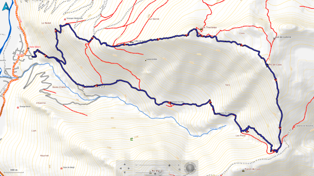 La boucle du jour : remonter « lou cami dou pastou » vers le port d’Aste. Parfaitement pavé, il mériterait d’être classé au patrimoine national ! Continuer par la longue crête de Guttéres jusqu’au Tousseau. Prolonger sur celle de Coos et rejoindre le pic du même nom. Basculer plein sud pour descendre au col d’Agnoures puis plonger, pour retour au point de départ, dans le vallon du bois de Peyraube. Un beau projet sur le papier ! Sauf que cela ne se passe pas toujours comme imaginé…