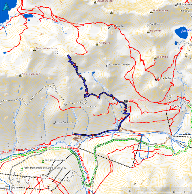 – Point le plus bas : parking de Tournaboup à 1524 m, le plus haut : pic de Barbe 2468m, dénivelé : 1000 m, distance parcourue : 13,1 km, carte 1748ET