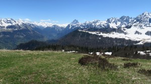 Le bois se termine brutalement. L’estive le remplace : magnifiques vues, droit devant, vers le Lasnères, l’Escala et le Montagnon d’Iseye. Le pensum en vaut largement la peine.