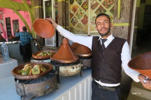 Arrivée à 200 mètres de dénivelé sous le col Tizi N’Rougoult, 8 tentes plus une collective marabout sont déjà en place. Décrassage agréable, en contrebas, dans un filet d’eau pour le rapporteur. Dîner sous la tente marabout : tajine « of course ».