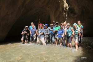 Très vite : entrée dans les gorges. Commencent près de 9 heures d’une descente magnifique où la monotonie n’aura pas sa place. Falaises vertigineuses. Strates aux mouvements « magiques ». Cassures gigantesques. Couleurs chaudes : des rouges, des jaunes, des orangés.