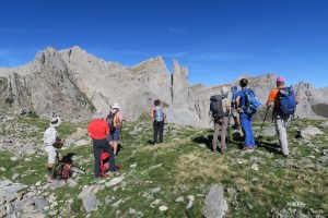 Déjeuner au sommet du pic de la Chourique, magnifique belvédère sur les massifs calcaires qui nous entourent. Coup de coeur pour le Mallo de Acherito et ses pentes blanches à la géologie tourmentée. Photo de famille.