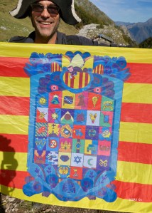 Aux cabanes, un aragonais inclassable, coiffé d’un tricorne napoléonien, sort de son sac le drapeau de son futur royaume d’Aragon dont, il le jure, il sera le roi prochainement ! Accompagné d’une jeune chinoise de Canton, ils forment là le couple le plus atypique qu’il soit. Son nom : Kikito d’Aragó e Due Sicilias. Le personnage, espèce de Capitán Alatriste sorti tout droit d’un livre d’Arturo Perez-Reverte, vient de publier « El libro del Rey de Aragon », déjà vendu à 1500 exemplaires. Plus sur lui sur FaceBook : Kikito de Aragon. Franche rigolade et nous reprenons notre chemin, non sans oublier de saluer sa majesté avec les révérences d’usage…