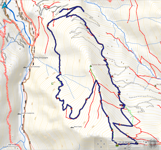 Parking, à l’altitude 1020, sur la route qui conduit de Villenave vers le vallon de l’Yse et le col de Peyrefitte. 7h35 : départ de la « sortie off ». Objectif : une boucle, dans le sens contraire des aiguilles d’une montre, pour rejoindre la ligne de crête qui conduit au Bergons (2068).