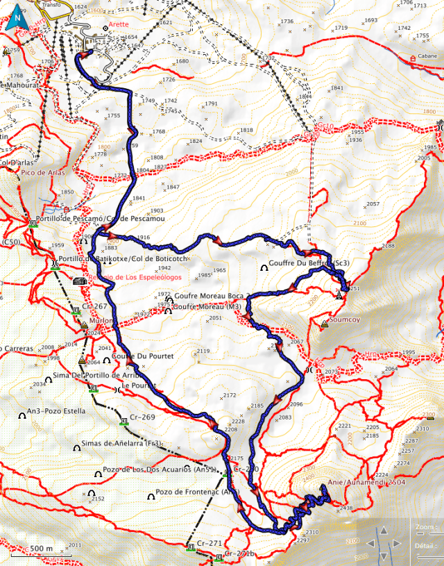Plus haut : 2500 m (pic d’Anie), 2147 (collet sous le Soum Couy)