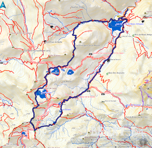 Aller aux lacs d’Ayous fin août, c’est prendre deux risques : celui de trouver le parking complet et un monde fou sur la traditionnelle boucle. Ce sera le cas pour les deux, même si nous arrivons avant 8h. Disons le de suite, Patrice est un « gentleman », il dépose la collective au parking complet de Bious-Artigues et descend se garer à Bious-Oumettes. Merci.