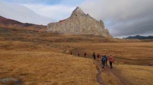 Au col, il fallait s’y attendre : « Et si on montait au pic d’Arroyeras ? ». Votation. Quelques voix s’élèvent en contre. Elles resteront au col, sous le vent, à attendre le reste de la collective qui part aussitôt à l’assaut de l’Arroyeras (pour les uns), Arroyetas (pour les autres). Le vent frais coupe court à toute pause au sommet vite atteint. Dommage. L’approche de l’hiver marque le rythme.
