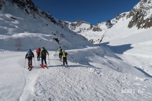 A Piau, les locaux se targuent d’avoir la station des Pyrénées, la plus enneigée. Force est de constater, qu’à aucun moment les peaux effleureront pierre ou herbe. Bonne pioche pour l’encadrant que cette destination ! Merci Patrick. La chose se sait : il y a beaucoup de randonneurs sur la trace.