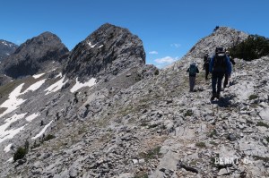 Après une Foratata occidentale rejointe sans difficulté, il y a cette longue crête, puis une antécime, puis une crête à nouveau. Vieux troncs de pins blanchis par le soleil. Photos souvenir. Mariano l’a dit !