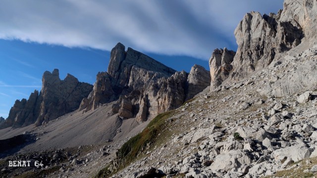 Le vent décoiffe à nouveau. Court séjour sur place. Descente pour rejoindre le collado de Acherito (oouf un seul toponyme cette fois pour un col 100% espagnol !). Au col, court passage exposé pour rejoindre la longue sente dans la pierraille – un peu pensum- qui permet de rejoindre le col de la Chourique et ensuite la cabane d’Ansabère. Le vent en rafale rend le passage plus délicat encore.