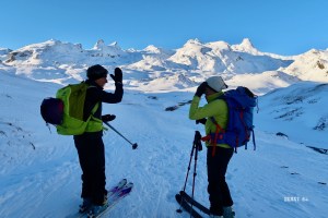 Effervescence sur les pentes, devant, derrière, à droite, à gauche. On sent la reprise, l’excitation même, après de longs mois d’abstinence. Démarrage lent. Il s’agit de retrouver d’anciennes sensations enfouies… pas trop profondément. Le souffle va. Le palpitant par contre est à accorder. L’effort de la grimpe : un sac, des chaussures, des skis. Tout est toujours trop lourd à monter.