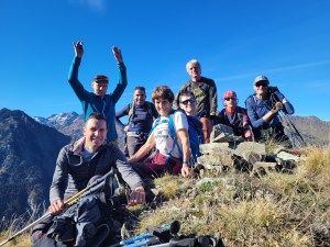 Pause déjeuner au sommet sous un beau soleil. Photo de groupe et retour par l’aller, au moins jusqu’au Lisey. La descente de la canole chauffe les genoux. Bâtons utiles.