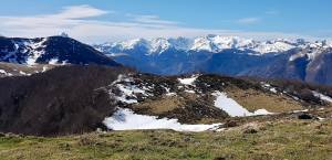 De la sortie elle-même que retenir ? l’originalité de passer par la Coumète (belle forêt), petit collet discret situé derrière le remarquable alignement des granges d’Aste. La montée ferme du vallon de Lauda. Les belles vues vers le sud des sommets béarnais enneigés et le silence total : pas une personne croisée durant la montée, pas d’animaux domestiques et, malheureusement, pas d’animaux « sauvages », ni même de trace dans la neige sous la crête sommitale. Pas même de « sarrios » sous le Sarratᵗ (ᵗ= toponymie – voir au bas de la chronique).