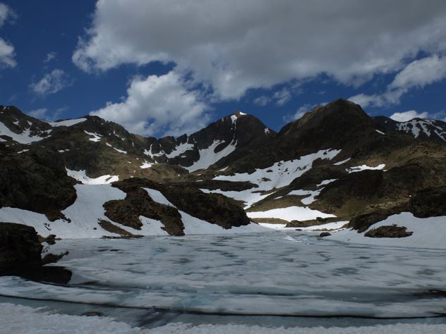 7h30 : l’eau ruisselle partout autour du refuge Barbote (2380m). Un mix de pluie et de fonte des neiges. L’orage s’est éloigné mais l’équipage reste inquiet. L’étape pour rejoindre le refuge Certascan est longue. Le col de Sellente (2490m) est vite atteint par une courte pente enneigée. Commence alors une longue descente dans des vallons …